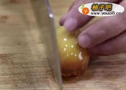 把皮蛋剥好,每个皮蛋,切成6拌。
