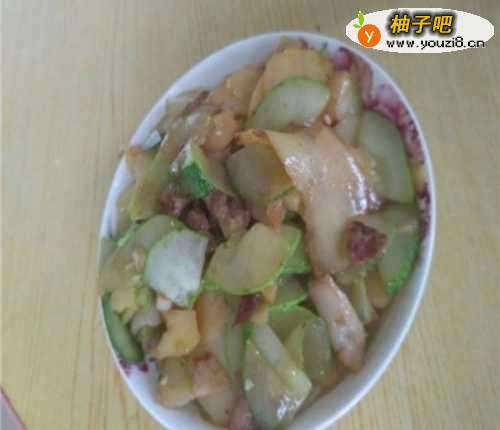 6翻炒一段时间,看到土豆片光鲜亮丽,肉滋味美已经溢流出来之后,就说明这道菜已经好的差不多了;马上准备好盘子进行盛菜。就这样一道唯美鲜灵的家常菜就做好了,配着米饭嚼上一口,真心不错。不需太久时间不用太多厨功,认真做就能做好的一道菜—土豆炒黄瓜片。不如你也来尝试做一次吧,很美味哦