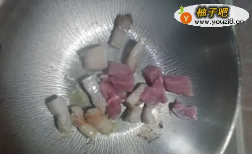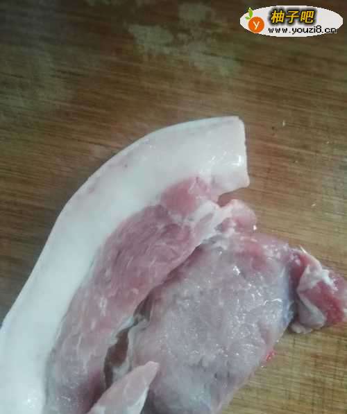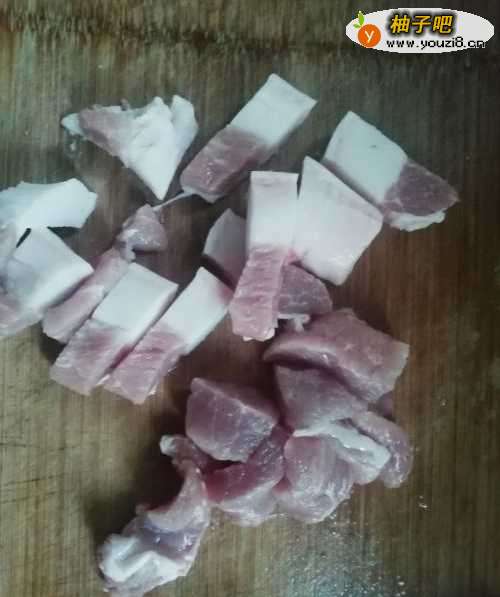 3五花肉切块,建议还是肥肉和瘦肉分开切。我这里不是纯正五花肉是这样的,如果真的是五花肉就没有必要了。