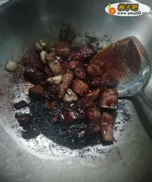 7加入蒜瓣等佐料,煸炒时可以适当放些糖。