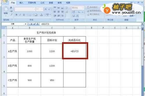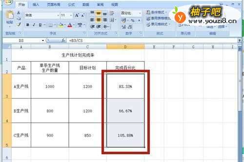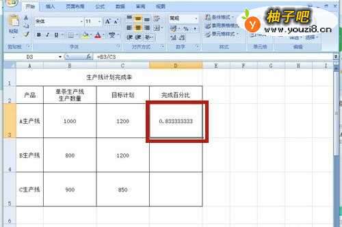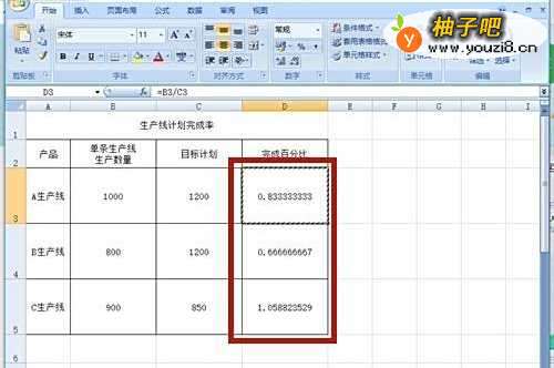 3按回车键后,得到D3单元格的计划完成率,以小数表示。