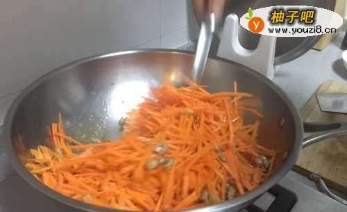 4放入胡萝卜继续翻炒,大火爆炒1分半,起锅,就可以啦