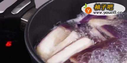 3煮滚一锅水,加入白醋,加入茄子煮5分钟