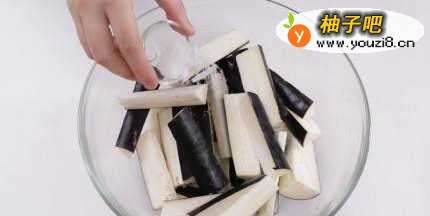 2茄子洗净后切块,用少许盐腌5分钟
