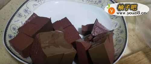 鸭血市场买来的,清洗下切小块,焯水后沥干水分。