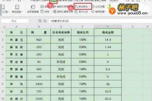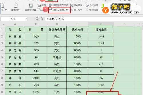 3点击菜单栏的【公式】—【追踪从属单元格】;
