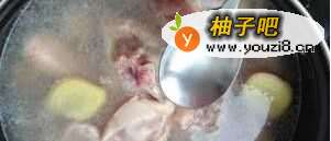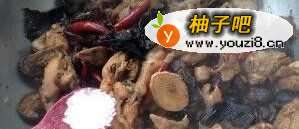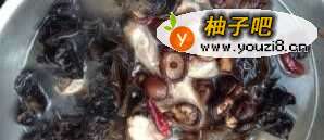 9加汤,把发好洗净的木耳和香菇放进去,大火炖半个小时左右