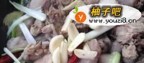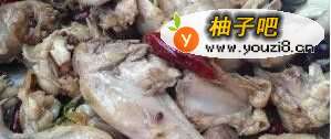 5将鸡块下入,加干辣椒,花椒,大料一起炒,把水分炒出去