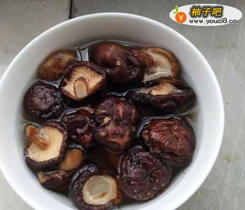 第一步:先将干香菇放到碗里面用温水泡15分钟左右,如下图所示。