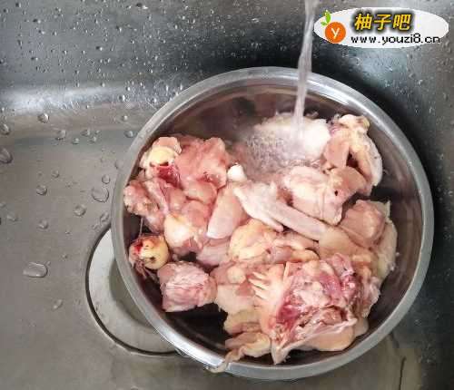 2第二步:将新鲜的鸡肉用流动的自来水清洗干净备用,如下图所示。