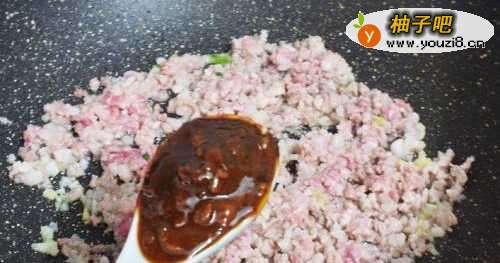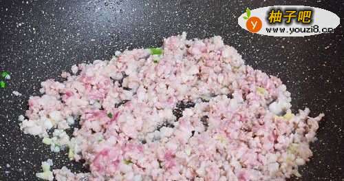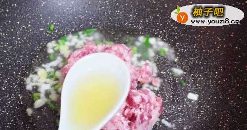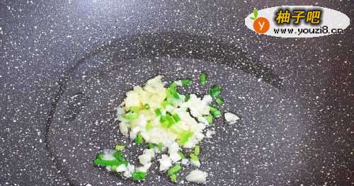 6另起锅倒入15克食用油烧热,再放入葱白蒜末姜末爆香