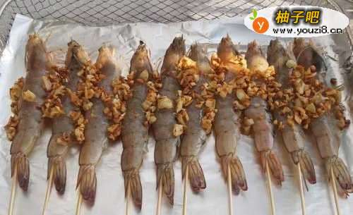 1、冲洗虾,去除虾丝,打开后盖,取出虾串,然后用竹签串在一起。2、用锡纸盖住烤篮,把处理好的大虾摆好。3、将黄油在小锅中融化成液体,倒入蒜末,炒至香。4、接下来,将炸好的蒜末撒在虾的表面。5、撒一些现磨的胡椒粉,海盐和白芝麻,放入预热的烤箱中。6、将空气油炸功能设置为180度约10分钟,就可以了。
