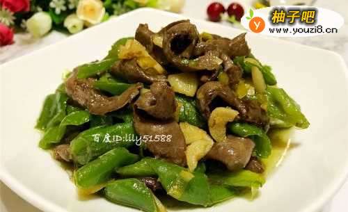 8猪心炒青椒就做好了,装盘。用蒜片和泡椒来爆炒猪心一点腥味也没有,非常好吃。