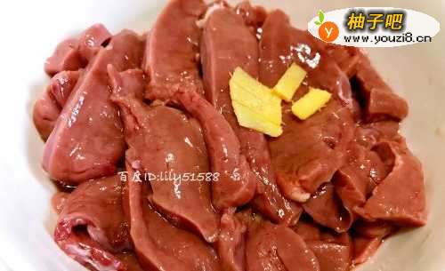 2放入少许盐、姜、料酒1勺腌制5分钟。