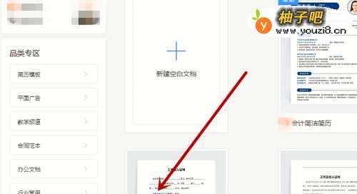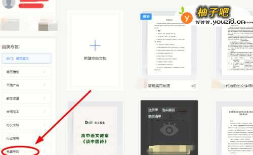 2在弹出的新建页面中,默认新建一个文字文档。点击左侧【品类专区】的【免费专区】