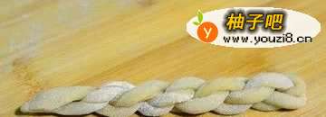 44.取一根切好的长条搓圆,提起一端,另外一端朝一个方向搓卷到上劲;