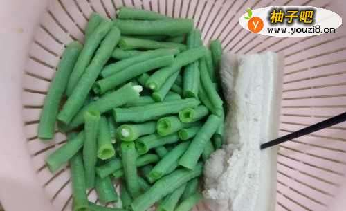 我们准备好五花肉和豇豆,做回锅肉最好是五花肉哦。