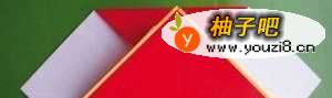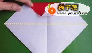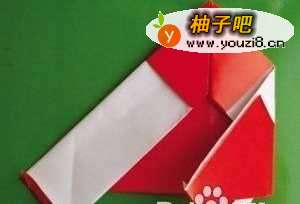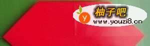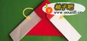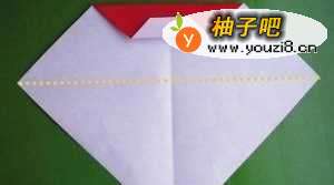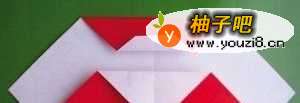 7将两侧的斜边向上往内折大约0.5cm宽度,红色纸面上就出现了两道白边。
