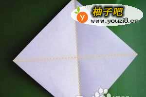 2选择正方形四个点中的其中一个顶点,将此顶点与正方形中心贴合,然后折起来。