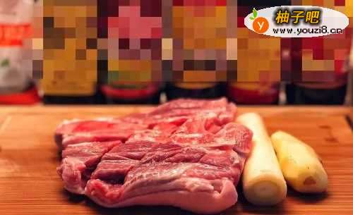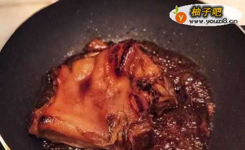 3热锅凉油炒糖,放葱姜爆香,待出香味后放处理好的肘子。葱姜可以多放,为了去腥,很多人不喜欢猪肉的土腥。
