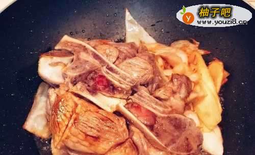 4炒至2分钟,加入生抽,老抽,蚝油,料酒,醋,十三香,少许盐,继续炒3分钟左右,加入水。