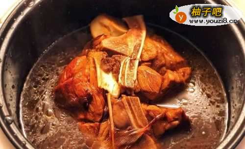 5水开后倒入电饭煲中,煮饭按钮,一个小时,开盖。中间可以打开翻个面。