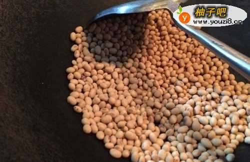 黄豆下锅炒,炒到出香味,表皮微微有点焦就熟了,可以起锅了。