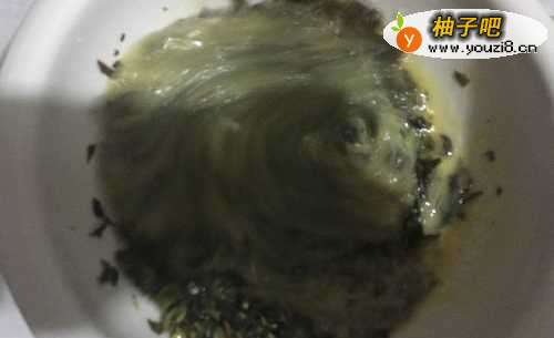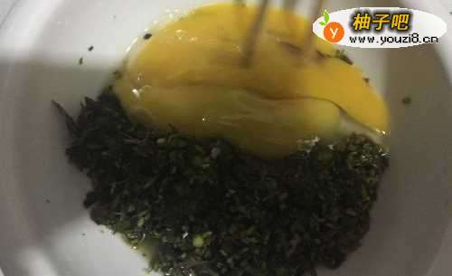 3然后用筷子把鹅蛋和椿芽一起搅拌均匀,如图。