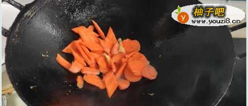 锅中加入40毫升食用油,烧至5成热,加入胡萝卜。