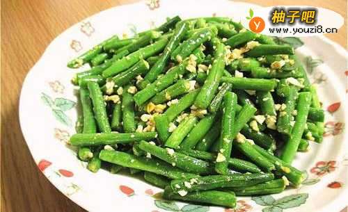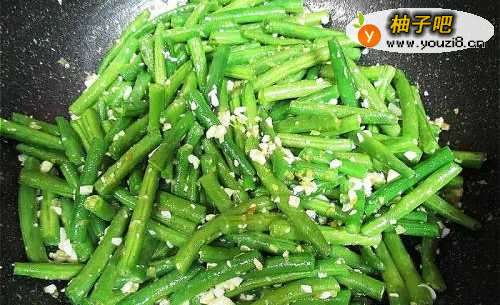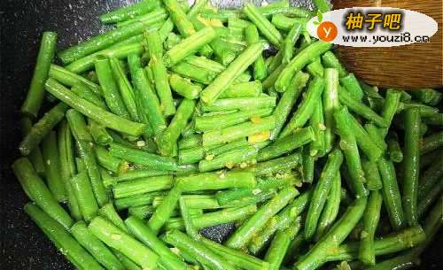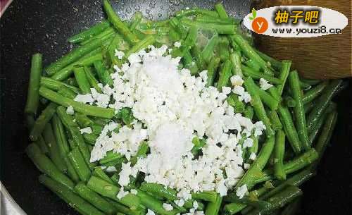 3加入四季豆翻炒,裹上一层咸蛋黄。