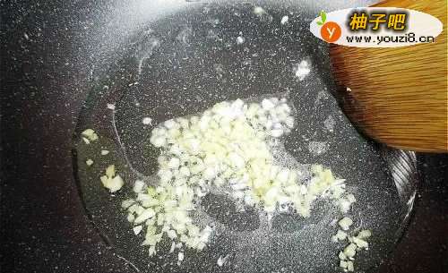2转中小火,加入咸蛋黄碎,炒到起泡。