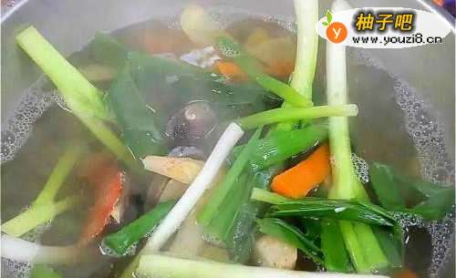 2备一锅水烧开,放入葱段、姜片、米酒、盐及、胡萝卜片,待水滚后放入小鲍鱼,即可关火。随后立即捞出冰镇。