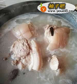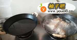 水开后会有浮沫,撇去倒掉,此时旁边的锅已经水烧开,尽量把肉放进热水里,怕遇到冷水收缩