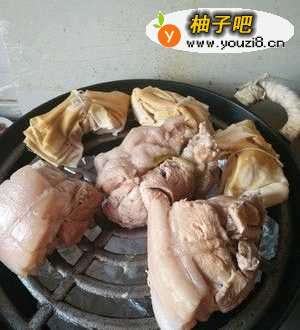 2煮好肉关火,在锅中放到温度还有不烫手,放到篦子上,控干水分。找个干净的锅,锅底放糖和香油,我糖下面放了锡纸,不然糖烧焦了锅子不好刷