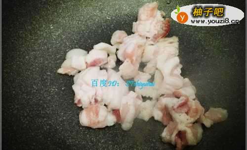 3打开电磁炉,加入少许油抹锅底,然后加入五花肉炸去部分油脂,将炸好的五花肉盛出放入盘中,加盐、酱油、料酒、醋等拌匀腌制。
