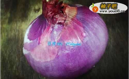 准备一个洋葱,将外层老皮剥离,放入水中清洗干净,将洋葱去头去尾,然后切成片状备用。
