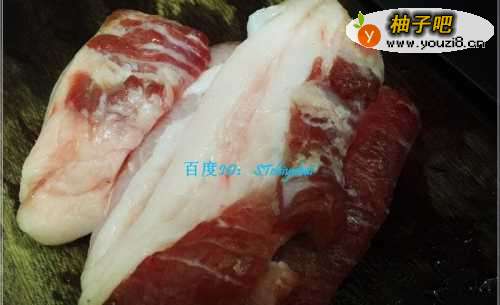 2准备若干五花肉,去皮洗净,然后将五花肉切成薄片状。