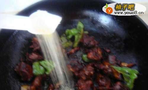 1320分钟后,把青椒倒入,加鸡精调味,翻炒均匀后即可