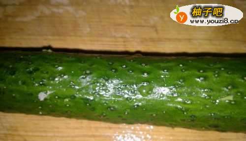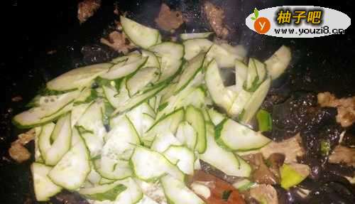 8炒出蒜香味之后随即加入黄瓜,再一同炒一会,加入适量的食盐、和味精,最后把淀粉糊倒入锅中。