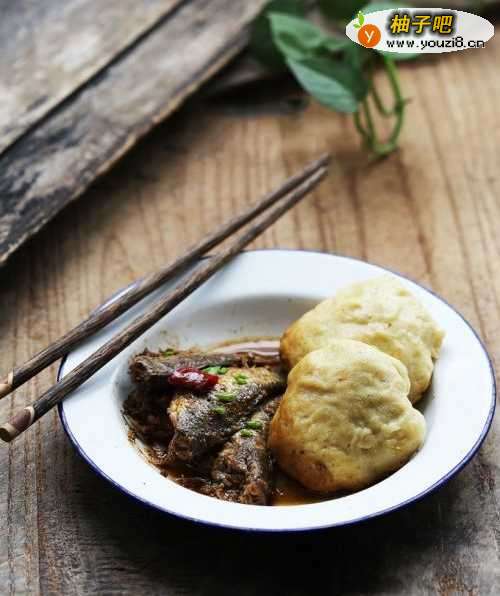 将小鱼连汤盛入碟内,与饽饽同食。
