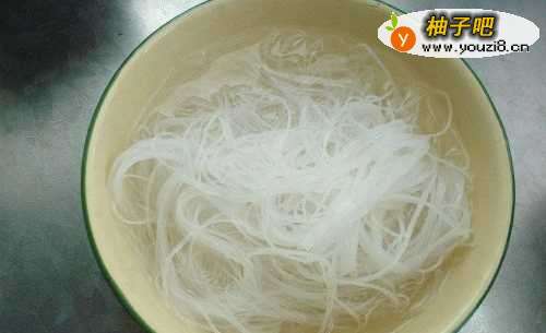 5五,准备好一份粉丝,洗干净,沥干。同时准备一些豆腐果,香菜,小葱。