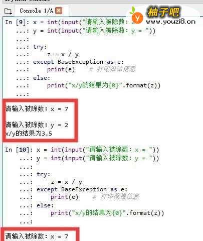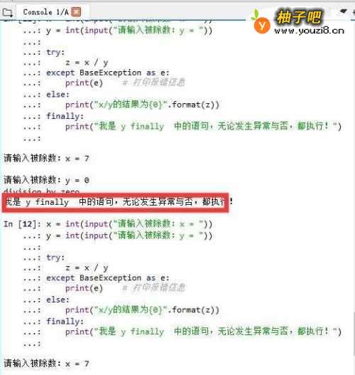 2、try模块中用两个print语句来验证是否执行除法运算;