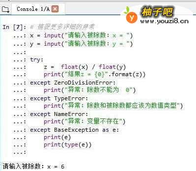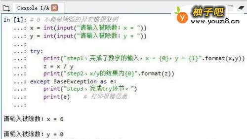 还是以一个0 不能做除数的异常捕捉案例。具体代码及执行效果见图。逻辑: