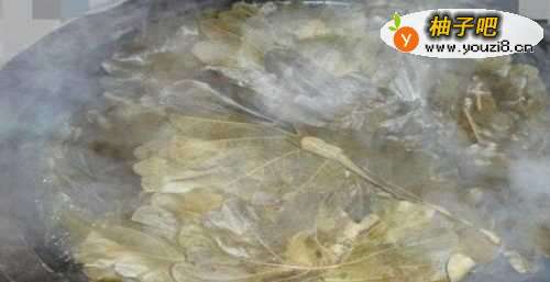 2槲叶带回家后放在太阳下晾晒,让干燥两三天,在端午节的前两天,放在锅里煮一晚上,第二天早上捞出来,就可以清晰闻到槲叶的香味,整个厨房都散发着天然叶子的迷香,捞出来后把叶子进行刷洗