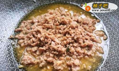 55.起锅烧油,油热倒入肉末