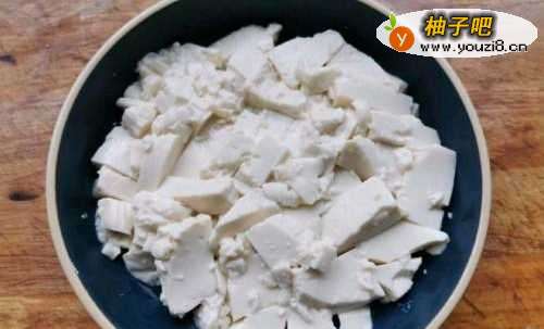22.将嫩豆腐放到盘子里随意的分成小块,方便入味
