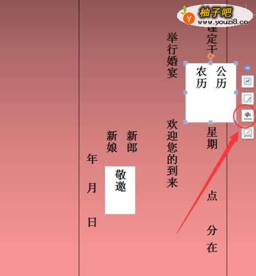 3插入文本框,竖行输入请帖的时间、地点、客套话等相关内容。