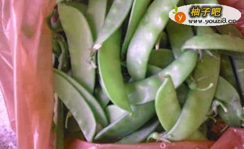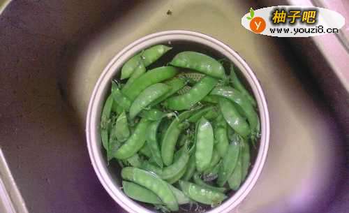 2把荷兰豆洗干净,把边上的丝撕了,如下图所示。