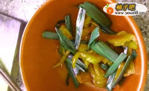 3把辣椒和蒜苗洗干净,切好,如下图所示。