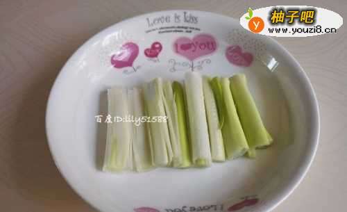 5在碟子里放入几条大葱段。